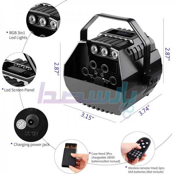 این دستگاه با داشتن خشاب مخصوص باطری تنها با 3 عدد باطری شارژی مخصوص مدل 18650 (بهمراه کالا عرضه نمی شود) امکان استفاده به عنوان حباب ساز شارژی را دارد. پارسصدا