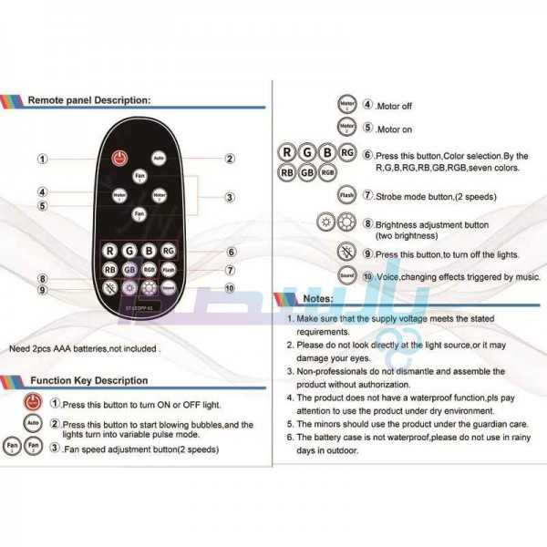 برای شروع به کار کردن دستگاه حباب ساز کافی است مایع مخصوص حباب را در مخزن جلوی دستگاه ریخته از کلید پشت ، دستگاه را روشن کنید حال با فشردن دکمه ریموت بی سیم، حباب ساز شروع به تولید حباب های بسیار زیبا می کند.