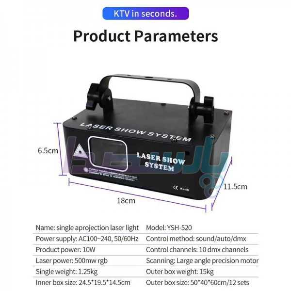 لیزر خطی بیم اسکنر تمام رنگ با امکان تولید سه رنگ قرمز ، سبز و آبی با توان لیزر 500 میلی وات و قطر ضخیم که توانایی ساخت افکت های 3 بعدی یا خطی بصورت فول کالر با درخشش بالا را دارد. این نوع لیزر ها در کنار دستگاه دود ساز جلوه هایی جذاب و حرفه ای به برنامه شما خواهند داد.