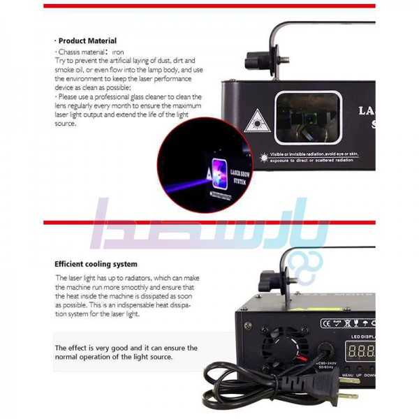 - دارای حالت کنترل در AUTO و SOUND و DMX و ریموت کنترل