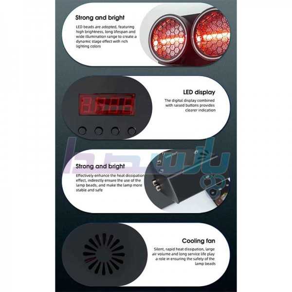 - مد کنترل: DMX ، اتومات ، حالت MASTER یا SLAVE
