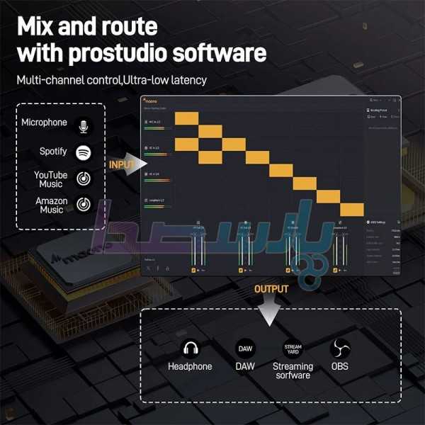 نرمافزار قدرتمند ProStudio: استریمر ها یا اینفلوئنسرها در رسانههای اجتماعی، با PS22 Lite کنترل پخشهای زنده خود را در دست بگیرید. نرمافزار مسیریابی ProStudio که همراه با این کارت صدا ارائه میشود، دنیایی از امکانات را با کانالهای مجازی و لوپ های اضافی باز میکند و با درایورهای ASIO برای خروجی با تأخیر کم سازگار است و انعطافپذیری لازم برای پخش شما را فراهم میکند.